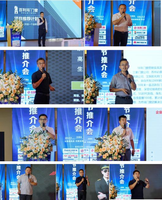门窗节推介会·无锡站受到众多工厂品牌积极响应。在工厂品牌推介分享环节,来自百利玛门窗、阿尔卑斯系统门窗、瓦瑟门窗、艾族阳光房门窗、伊博莱门窗、维朗门窗、叶阳阳光房、福临门恒温门窗、金大门业的9个门窗品牌工厂负责人依次上台进行品牌推介分享,探讨门窗品类新未来。