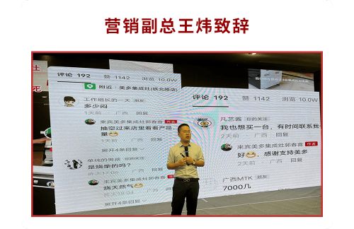 紧接着,美多市场总监赵龙告诉大家一个好消息,美多3大厂区齐布局,美多新营销大楼已经落成,新增不锈钢橱柜项目,将集成灶与高端不锈钢全屋定制产品高度融,满足品牌日益增长的市场需求。并且从各区域销售情况分析,并就寻找流量、提高成交率以及店面运营三方面进行培训,提升销售人员的营销能力和专业度,让大家更加清晰的掌握消费者的心理活动,提升订单量和销售额。