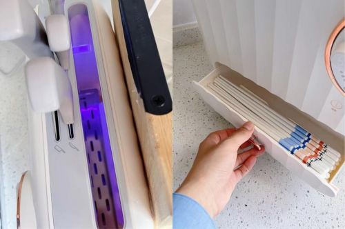在收纳厨具的同时还能够消毒菜板/刀/筷/勺子,而且还能进对果蔬食材进行净化!有博拉利果蔬刀具消毒机在身边,吃进嘴里的美食才放心~