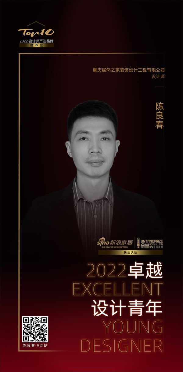 “2022卓越设计青年”由新浪家居和金堂奖全国联盟发起,是设计业界最具传播价值的年度先锋荣誉,新浪家居与金堂奖联名认证。旨在发掘和表彰室内设计领域表现卓越的杰出青年设计师。设计师陈良春荣膺“2022卓越设计青年”称号。