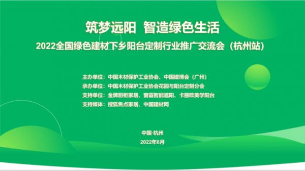 8月1日,由中国木材保护工业协会、中国建博会(广州)主办,中国木材保护工业协会花园与阳台定制分会承办的“筑梦远阳 智造绿色生活”2022全国绿色建材下乡阳台定制行业推广交流会杭州首站成功召开。
