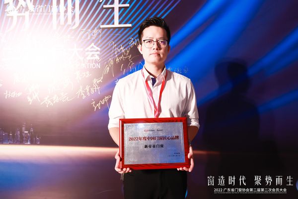 在8月8日举办的“窗造时代·聚势而生”广东省门窗协会第二届第二次会员大会现场,在产品品质和品牌发展等方面有着卓越表现的新帝豪门窗,获得“2022年度中国门窗匠心品牌”荣誉。