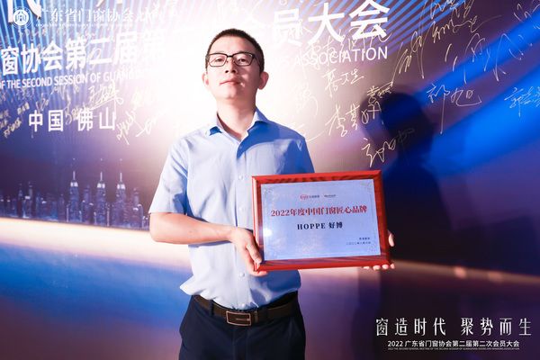 在8月8日举办的“窗造时代·聚势而生”广东省门窗协会第二届第二次会员大会现场,在产品品质和品牌发展等方面有着卓越表现的HOPPE好博,获得“2022年度中国门窗匠心品牌”荣誉。