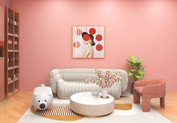 马卡龙色系,闪亮明媚,给人一种平静安定又不乏清凉、甜美的感觉,年轻而充满活力。夏雨系列选用了天蓝色、奶油色、珍珠白、杏黄色、少女粉、珊瑚粉。整体色彩是比较温暖明亮的,如果选择这些颜色的墙布,仿佛空气中都充满了甜蜜的味道。