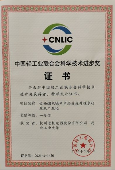 中国轻工业联合会五届二次会员代表大会、中华全国手工业合作总社八届二次代表大会于2022年8月9日在北京召开。老板电器凭借“吸油烟机噪声声品质提升技术研发及产业化”项目,一举斩获了2021年度中国轻工业联合会科技进步一等奖,这也是老板电器自2019年以来连续三年获得该奖项。