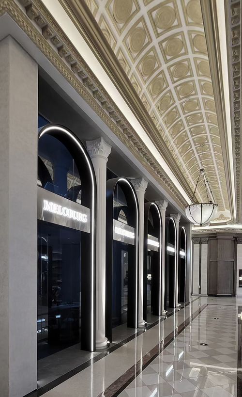 本案从商业底层逻辑出发,为品牌落地新市场领域助力。通过设计呈现出品牌与竞品之间的差异化空间定位,借助与品牌风格极度反差的商场现有内装环境,诠释了高定品牌的设计基因与落地能力。精准锁定品牌目标客群的价值锚点,打造对商业最终诉求负责的展厅设计产品。