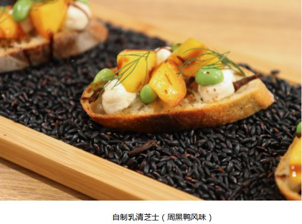 美诺Miele的烤箱,通过内置的摄像头,可随时用APP查看食物的烹饪状态,其精确的温控技术,让用户无需费心旁观也能灵活掌握食物的制备状态。风扇加强的功能,在烹饪肉类和面包时可以既保证食物受热均匀,又避免了传统烹饪方式中局部火候不足等问题。在经过美诺Miele烤箱的松脆烘焙模式烹饪后,周黑鸭鸭脖碎不仅保留了自身的香辣爽口,更添了几分酥脆;拥有灵活度高的高速烹饪功能和贴心便捷的保温功能,不仅可以保持食物的温热口感,还能防止长时保温可能带来的烧焦或干燥。由淡奶油和牛奶组成的乳清芝士,制作得浓郁可口。搭配酥脆的周黑鸭碎,佐以烤香的切片法棍,与毛豆仁桃子丁,成为一道带有浓厚武汉风情的配酒佳肴。