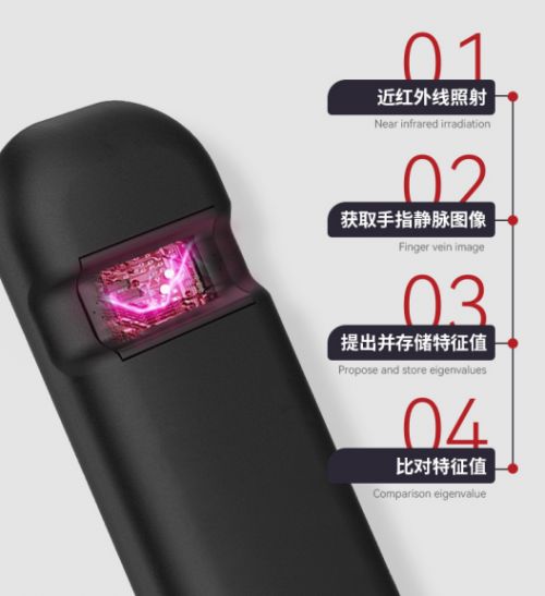 指静脉识别是好太太V65智能锁的核心技术,通过近红外光对手指进行照射,流动血液中的血红素吸收了近红外光后,获得清晰手指静脉图像,再使用特定的算法从图像中提取出纹理特征值,识别时将提取的特征值数据与存储的特征值数据进行比对,给出识别比对的结果,从而达到身份识别的功能。由于需要流动血液识别,安全性更高,这种方式相对于传统指纹识别精度更高,无被盗窃复制指纹开锁风险。即使手指表面脏污,或者老人小孩等指纹不清晰人群,同样可以识别录入信息和准确解锁。