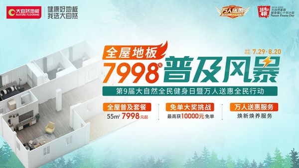 为满足消费者一站式家装需求,大自然地板第九届全民健身日暨万人送惠全民运动在全国火热进行中,更是联合红星美凯龙打造818FUN肆嗨购节,推出全屋地板普及风暴。据悉,大自然地板零醛ENF级环保地板全屋铺装,低至7998元起;全屋普及套餐三色可选,现代、轻奢、以及日式田园三大风格随心铺装,一步满足消费者风格、功能、环保、颜值、便捷等五大需求,让消费者轻松get全屋木地板空间,打造健康舒适家,有需要的消费者赶紧到大自然地板线下各大门店了解选购吧。