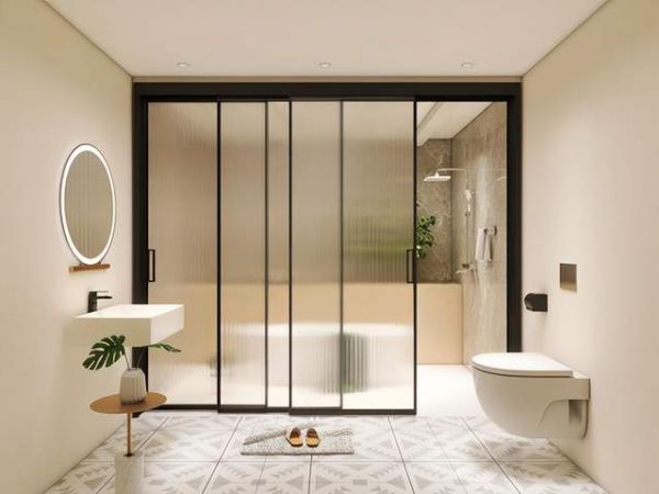 卫生间对私密性较高,德立全景门以「雅黑边框+长虹玻璃」的组合,保护私密性的同时,也与水龙头、洗脸台黑灰色调等常用设施保持统一风格,营造极简纯净的卫浴场景。
