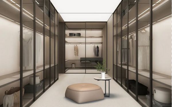 延续主卧的淡雅色调,浅茶褐色的衣帽间更具精致感,三面衣柜设计满足收纳需求,衣物合理悬挂分区,更显秩序美感,便捷实用,给居主优雅生活。