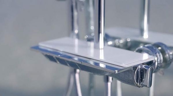 实验人员抽取盐湖水,打开花洒的喷洒功能,让花洒持续喷洒4小时。在喷洒过程中,我们可以看到因为出水口处盐水不断结晶,水流由大变小。而在拨动拨片之后,手持花洒内的顶针将内部的盐颗粒“顶”出来了,出水顺利恢复!不仅手持花洒可以利用顶针完成自清洁,顶喷也是完全不用担心清洁问题,充分利用水压原理实现全自动顶针除垢,淋浴每次开关就完成一次自清洁,随时都能享受澎湃水流。