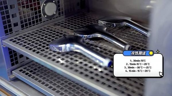 在经历极限环境挑战之后,琴雨花洒又被带到实验室内,工作人员设计了急冷急热循环测试,来验证花洒是否稳定耐用。
