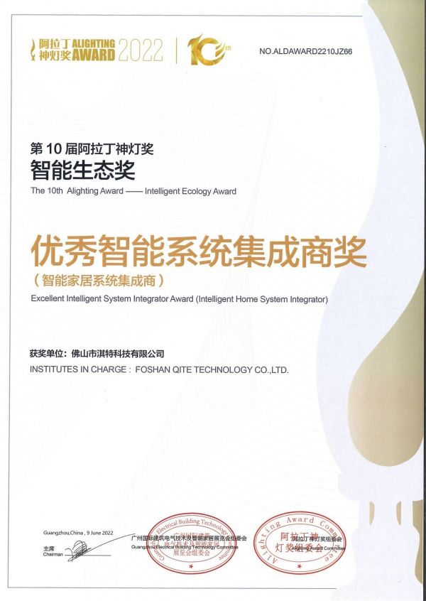 喜讯!淇特科技全宅智慧系统获得“阿拉丁神灯奖”智能生态两项殊荣