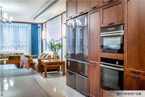 为营造整体美感,很多人会将冰箱嵌入橱柜。但多数冰箱嵌入后两侧要留10cm散热缝,为了冰箱门顺利打开,门体还要凸出两侧橱柜。这样既不美观,又占用空间。而卡萨帝原创零距离自由嵌入式科技,将冰箱改为底部前置散热,贴近橱柜也不会影响散热效果;同时,通过离心变轨铰链,冰箱门在两侧紧贴橱柜的状态下也能90°开启。为达到视觉统一,卡萨帝还创新超薄发泡层科技,将冰箱厚度降至60cm,与橱柜标准深度保持一致。