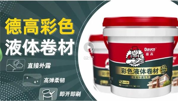 除此之外,屋面常常要风吹日晒雨淋,耐候性好的屋面防水材料,才可以轻松驾驭。基于此,推荐德高新城镇系列新品——彩色液体卷材!