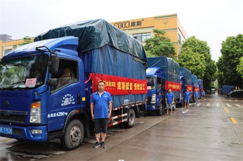 龙江镇政府领导与库斯家居执行总裁陈坤寿等高管一起共同伸出温暖的手,点亮了象征爱心与慈善的水晶球,五部满载爱心家具的待发货车同时鸣响喇叭。爱心车队在不期而遇的大雨中出发了,总共价值70余万元的库斯家具将奔向21个受捐家庭与单位,帮助他们改善家居生活。