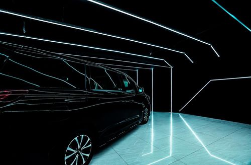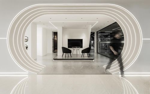 本案用黑、白、灰色调和灯光的结合创造出干净利落的空间感。以干净,酷炫为出发点,将现代感全方位渗透到空间中,使设计理念与客户观赏需求很好结合,形成极具人文科技感的空间语言。