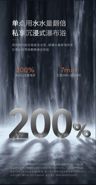 超增压瀑布洗,随时畅享澎湃热水