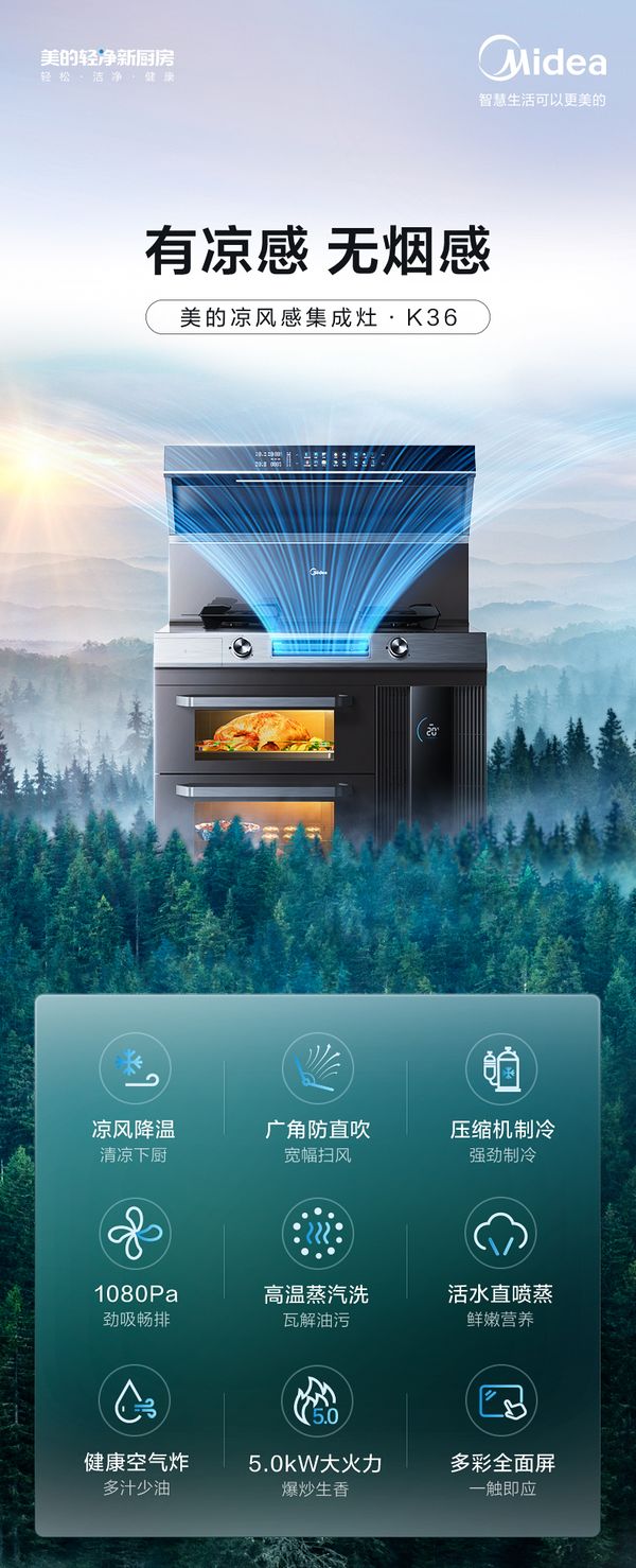 美的作为集成厨电的先行者之一,自2009年创立集成厨电品类以来,始终以用户需求为中心,以创新驱动发展,快速实现了集成灶的自主研发、自主设计、自主制造,带来不少优质的集成厨电新品。此次美的凉风感集成灶K36新品的上市,不仅为广大消费者带来了解决夏季下厨高温难耐的方案,更是引领了集成灶产品的结构创新和功能创新的全新方向。