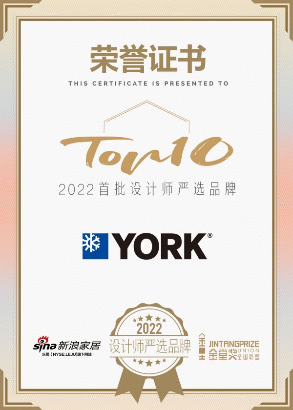 近日,由新浪家居联合金堂奖全国联盟共同发起的「2022 设计师严选品牌 TOP10」活动重磅启动,活动汇集了全国两岸三地数十位设计大咖担纲特邀点评嘉宾,并邀请全国千余名卓越青年设计师担任推荐官,以设计师专业视角,甄选出服务于设计师及业主的高品质制造品牌。江森自控约克荣膺「2022 首批设计师严选品牌TOP10」称号。