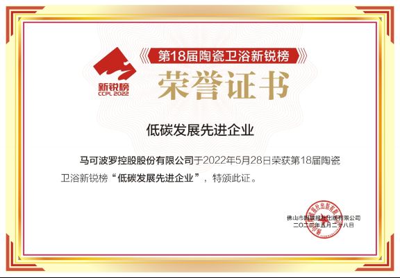 今年5月,马可波罗控股还在第18届陶瓷卫浴新锐榜颁奖盛典上荣获“低碳发展先进企业”荣誉称号,充分体现了行业对其绿色制造的高度认可。