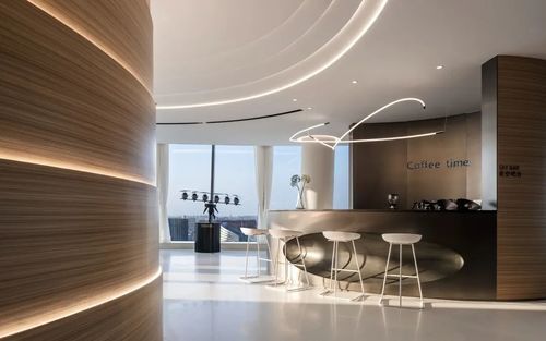 项目选材采用了营造出时空感的灰色铝板,成功打造出空间里“标志性打卡点”,令空间拥有极佳的视觉冲击效果。办公区休憩区采用了温和舒适的木纹板材料,令空间呈现出一种柔和自然的感觉。
