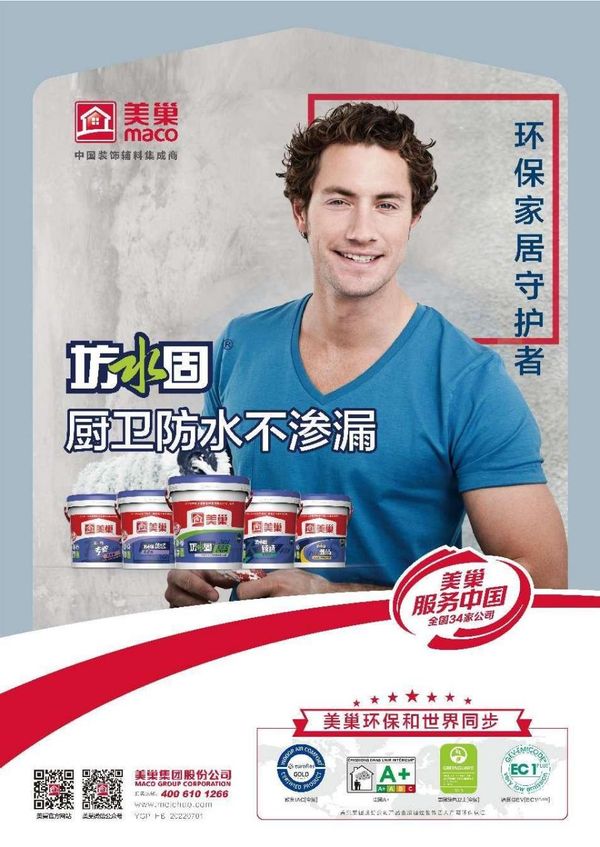 美巢坊水固是美巢推出的家装防水产品,从生产到检测环节,严格把控产品质量,坚守“美巢环保和世界同步”的环保理念,产品全部通过美国 UL GREENGUARD 绿色卫士金级、德国 GEV EMICODE EC1PLUS、欧洲欧陆 IAC 金级以及法国 French A+级标准。