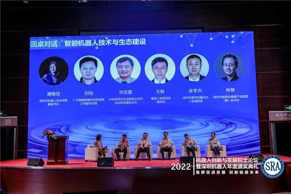 与此同时,2022机器人创新与发展院士论坛暨深圳机器人年度颁奖典礼也在5楼簕杜鹃厅隆重举行,此次活动由深圳市新一代信息通信产业集群主办、深圳机器人协会承办,邀请20多位资深专家共同探讨机器人行业现状及未来发展,吸引了众多行业观众参与此次活动,现场气氛热烈。