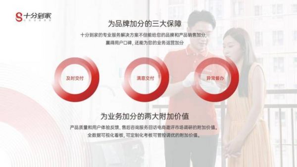 十分到家以智慧服务平台、服务连锁、服务工厂为抓手,从服务平台公司转型为服务实业公司,从售后服务升级为集安装、维修、保养、回收于一体的家电后市场综合服务,为品牌方提供全方位全场景的个性化定制解决方案,成为品牌方最紧密的合作伙伴,助力品牌方成功。