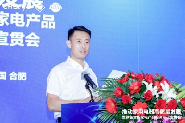 2022年8月18日,由中国家用电器研究院 中家院(北京)检测认证有限公司联合安徽省信息家电行业协会共同主办的“推动家用电器高质量发展暨绿色智能家电产品检测认证”宣贯会在合肥召开。安徽省经济和信息化厅二级巡视员查汉斌、中国家用电器研究院院长刘挺、安徽省经济和信息化厅消费品工业处处长吴合金、中国家用电器研究院副院长曲宗峰、安徽省信息家电行业协会执行会长周保宇等领导出席了本次会议,来自相关政府部门、行业协会、科研检测机构以及家电行业主要企业的专家代表齐聚一堂,共同探讨智能家电低碳绿色发展,共话产业未来。