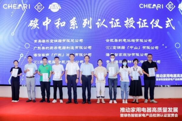 绿色产品认证,是在国务院印发的《生态文明体制改革总体方案》的指导思想下,践行《国务院办公厅关于建立统一的绿色产品标准、认证、标识体系的意见》等文件精神的重要成果,作为国家批准的首批绿色产品认证机构,中家院发挥自身的专业技术优势,通过质量信任,传递绿色发展理念。除了绿色认证以外,中家院还推出了绿色低碳家电认证,帮助行业“碳达峰”、“碳中和”工作的落地推进。本次会议发布了最新的碳中和系列认证,获得此项证书的有青岛海尔空调器有限总公司、广东美的厨房电器制造有限公司、海信容声(广东)冰箱有限公司、TCL家用电器(合肥)有限公司、合肥美的电冰箱有限公司、TCL空调器(中山)有限公司、海尔智家股份有限公司、青岛海尔特种电冰柜有限公司等多家知名品牌。