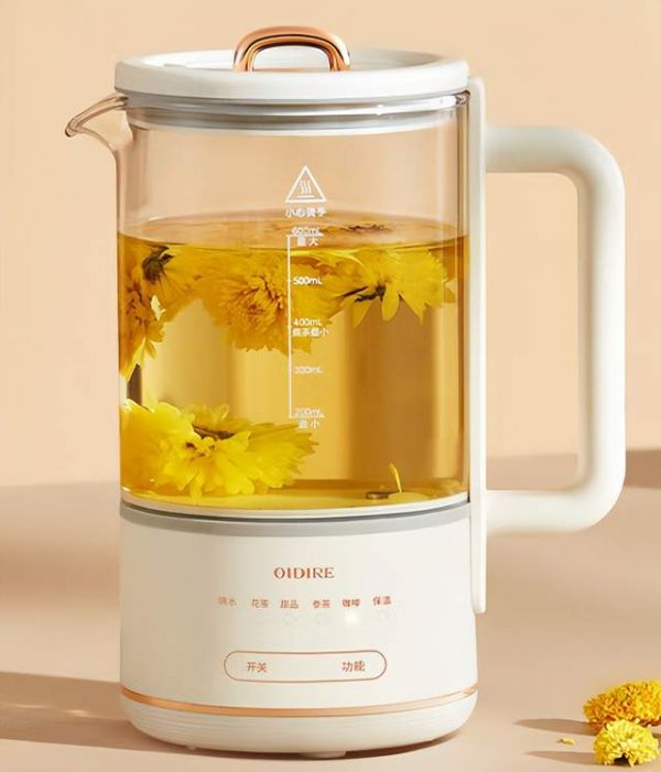 Oidire养生壶,非常小巧不占地方,拥有600ml的容量,12小时保温,煮茶的时候噪音很低,不用担心公众场合影响其他人。陶瓷釉发热盘,不粘涂层,不容易糊且易清洗,值得入手。