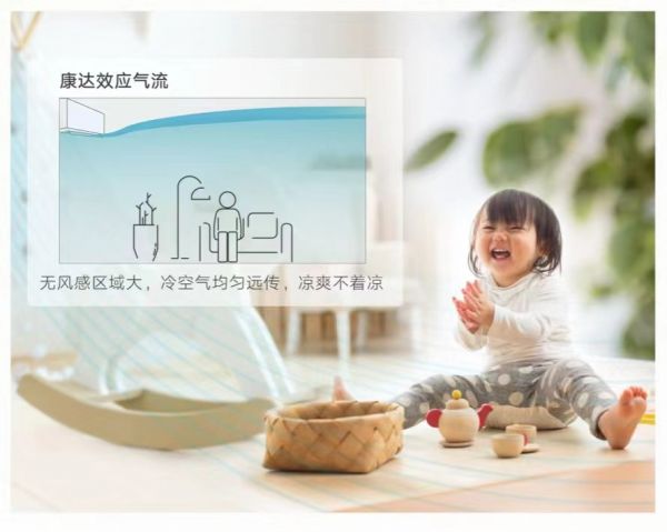 大金空调制冷时开启康达效应气流*3,冷风避人不直吹,有凉意无冷风的轻柔风感孩子也可安心使用*4