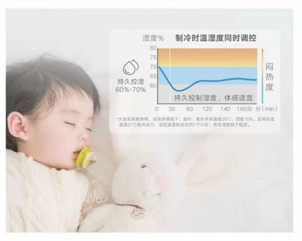 “一台空调就能解决温度和湿度的平衡,还不用各种加湿器除湿机占空间,感觉宝宝哭闹都变少了!“