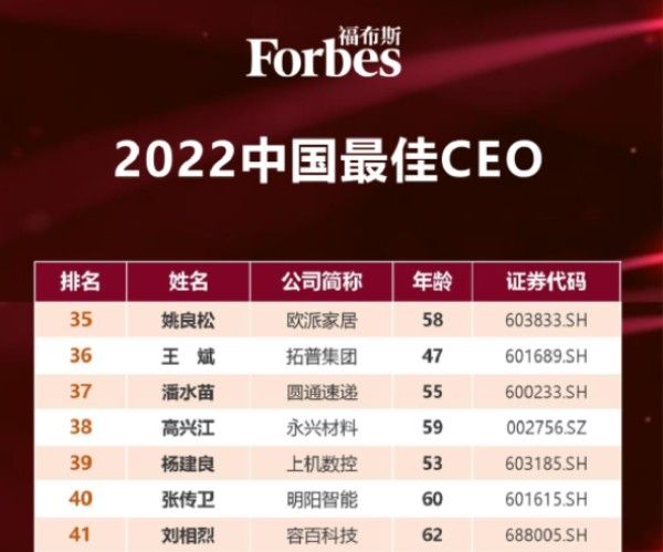 定制快讯|欧派家居姚良松入选福布斯2022中国最佳CEO榜