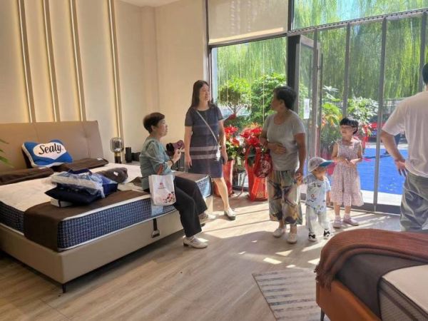 平谷门店主要的产品为丝涟智选系列的产品,这也是享誉全球的床垫高端品牌Sealy的亲民系列。现场观看开业活动的附近居民在仪式结束后纷纷进入门店体验。