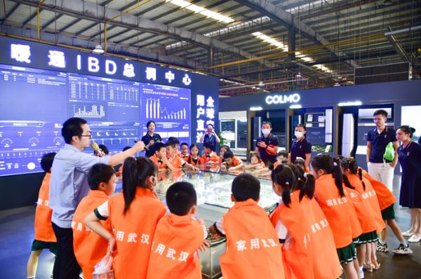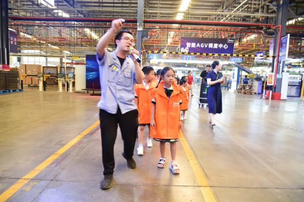 参观完安全角后,就是去生产线实地参观了,萤火之家志愿服务小分队的同学们跟随着工作人员,依次参观了暖通工厂和COLMO工厂,工作人员对生产线进行了详细讲解,在见到自动工作的机器人时,孩子们发出了一阵阵惊叹,他们的活力让产线上的工人们也都露出了笑容。