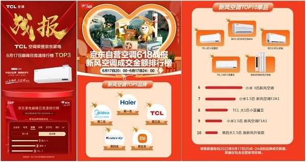 第三步跨越则来自于TCL新风空调增量和增速的全面爆发。在今年的618大促中,TCL空调不仅经历了“京东巅峰48小时”,成交金额稳居行业TOP3,一直以来的明星级产品TCL新风空调小蓝翼Ⅱ更凭借这次618在全电商渠道效率突破10000台。