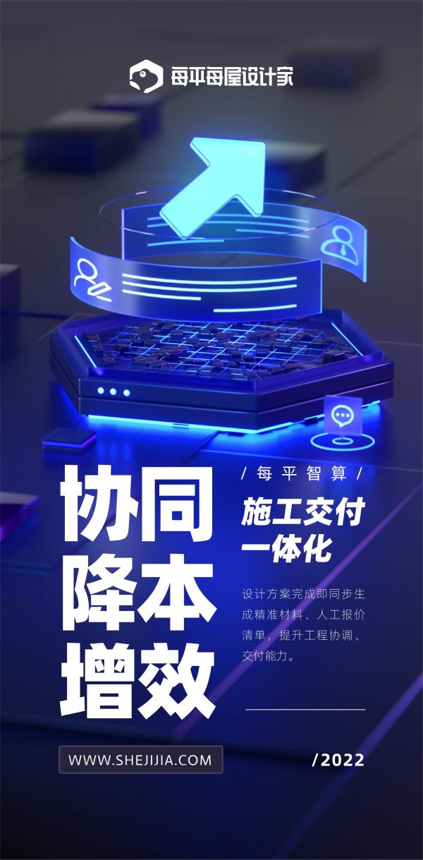 对装企来说,每平智算能够成为装企的数字化平台,针对装企商家所设计研发的的设计-算量-报价-签约-变更一站式工作台,能提升各环节人员作业效率,实现作业过程和结果的高效精准,同时沉淀装企标准化管理模式,利用数字化能力,管理各环节人员的规范作业,降低装企管理成本。另一方面,在消费者体验上,每平智算所提供的智能设计工具,将2D升级为3D的设计模式,增加客户全方位的沉浸式空间体验和装修代入感,从而更好达成商业转化。