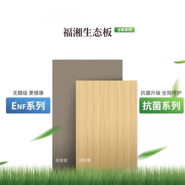 创新品质,率先行业。福湘创新推出生态板ENF系列,环保达到最新国标ENF级标准,更是荣获儿童安全级产品认证,36道匠心工艺让产品品质更出色。高效抗菌系列,安全无毒,全效抗菌,前沿风格,是您的家装优选。