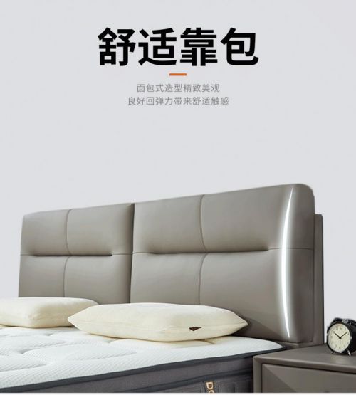软床相比于木床,最大的不同就在于它的舒适性。东宝软床DB-PC103的外表采用超纤面料包裹,超纤面料触感柔顺,透气亲肤,耐磨耐用。床头软包采用高回弹超力棉填充,犹如一块饱满厚实的“法式面包”,给人以舒适倚靠。