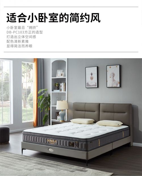 东宝软床DB-PC103是一款紧凑型的软床,采用齐边设计,床屏与床垫、床体齐平,节省卧室空间,而且方便更换床单,上下床的时候避免不必要的磕碰。金属床脚高12厘米,可收纳杂物,方便扫地机器人进出,从而提高了软床的实用性。
