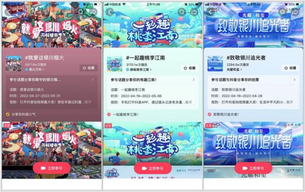 首先,巨量引擎结合宁夏万科、绿城、光耀的品牌特性,分别以“就爱这银川烟火”、“一起趣桃李江南”、“致敬银川追光者”的城市话题进行互动,并邀请“银川闲公子”、“鸟叔说房”、“小李飞叨”等城市达人以“直播间达人拼盘直播”的形式,进行持续的人格化演绎;在直播间里,直播间达人通过直播组件灵活切换,合作客户官抖预先配置小风车组件等直播产品,以此助力线上营销链路的完善,气氛活跃,互动爆棚,直播留资效果尽显。最终整体的活动曝光超1亿,实现了1+1大于>2的效果。