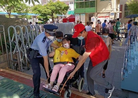 厦门市筼筜街道槟榔社区核酸检测点的工作人员,由厦门市中医院的医护人员、槟榔社区工作人员、槟榔中学的教师志愿者组成。