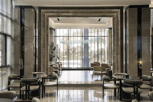 本案以自然、山水为主题,将室内外景观相互融合,有传统中式建筑的「斗拱结构」,矩阵纵横的装饰美和形式美,庄重而威严,又有「大珠小珠落玉盘」的诗意柔美。闲适优雅、静谧与尊贵,塑造出更深层次的视觉体验。