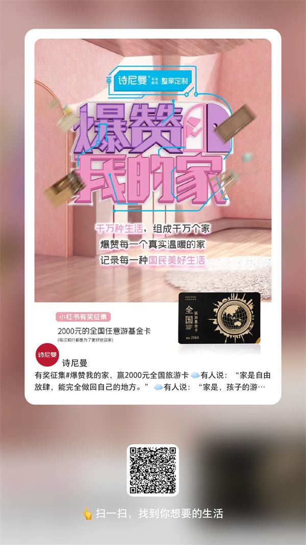 诗尼曼也号召更多小红书博主的参与,去show出他们真实的家,分享家装设计与使用心得,用更丰富的维度,去看见和发现更多更有代表性的真实生活,去连接、拥抱不同的家居生活。让诗尼曼“让定制飞入寻常百姓家”的初心,触达不同的圈层,拂照更多的生活确幸与美好。