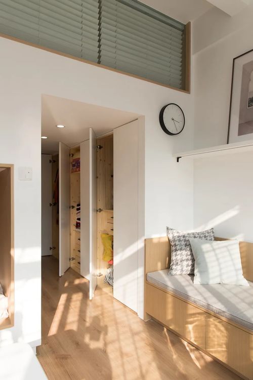 考虑到居住条件的限制,设计师以实用性为主,对空间进行了彻底改造,以集约化的收纳方式,设计了一处22立方米的超大收纳空间,相当普通100多平米项目的收纳,让原本无处安放的杂物等都有了更多的存放空间。