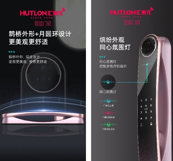 基于消费群体结构、消费偏好的变化,汇泰龙在新品“彤心锁”设计之初,专门结合代言人关晓彤的应援色,定制了专属的色调“彤粉金”,营造家居个性、从入门处便映衬家居氛围。此外,在外观设计方面,还汲取中国七夕牛郎织女的浪漫爱情故事,设计出了以鹊桥+月圆环的外观,搭配定制的炫彩渐变面板,增加时尚、浪漫感。彤心锁采用缤纷同心氛围灯设计,独具“小心思”的同心氛围灯,直观地显示门锁“识别中、识别成功、识别失败”的三种状态,让用户对开锁情况一目了然。