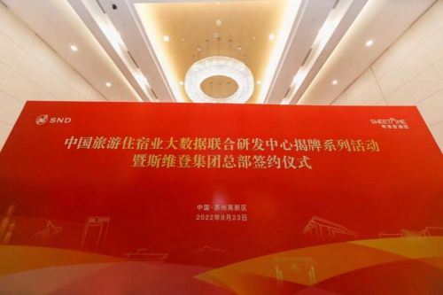2022年8月23日,中国旅游住宿业大数据联合研发中心揭牌系列活动暨斯维登集团总部签约仪式在苏州高新区举行。中国旅游研究院院长、文化和旅游部数据中心主任戴斌,苏州高新区党工委书记毛伟,苏州市商务局副局长李兆玮、市文化广电和旅游局副局长徐伟荣,途家及斯维登集团联合创始人罗军,区领导虞美华以及市、区相关部门负责人,高新区三大功能片区相关负责人,科技、旅游、民宿产业链企业代表等线上或现场出席活动。